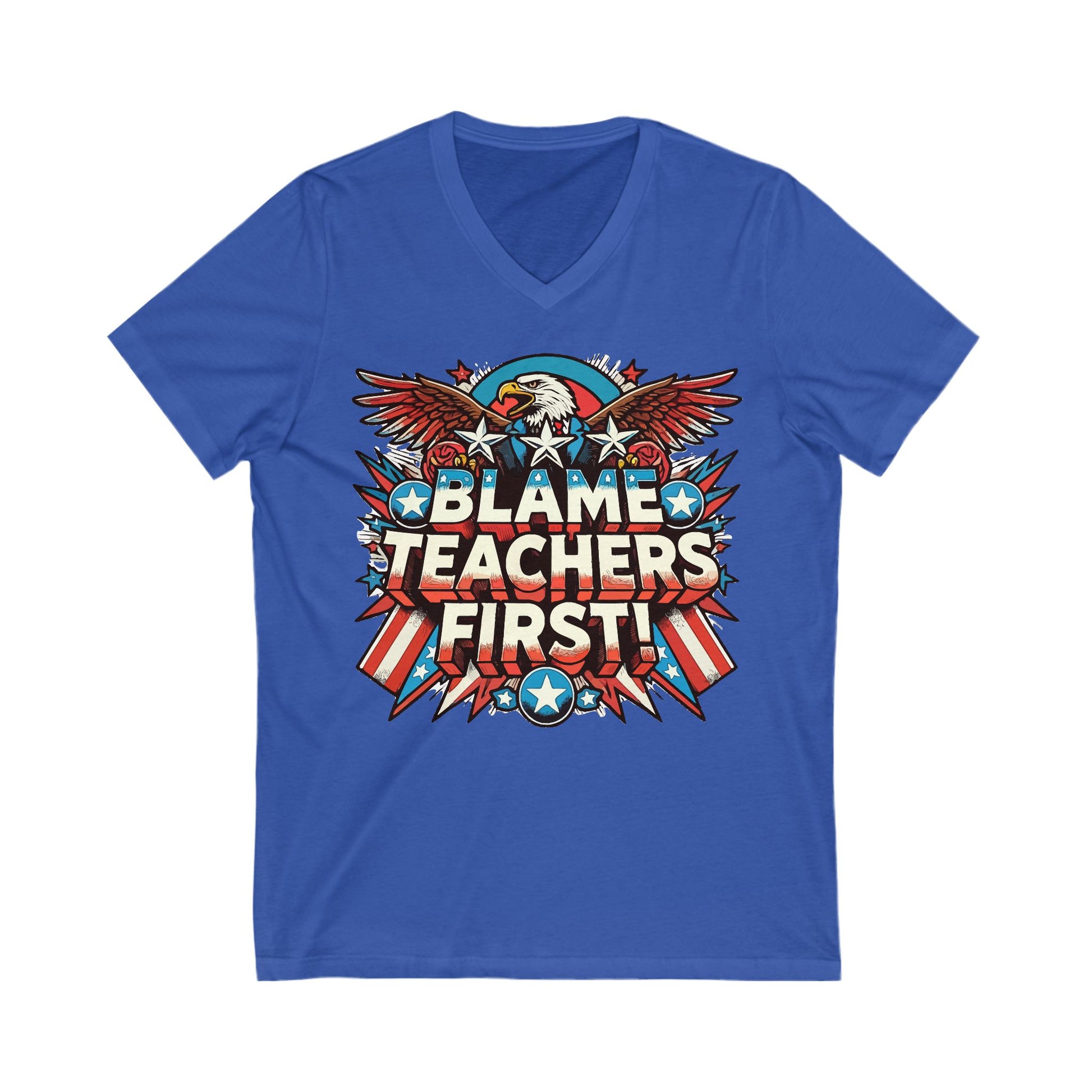 Patriotic "Blame Teachers First” V-neck Tshirt
